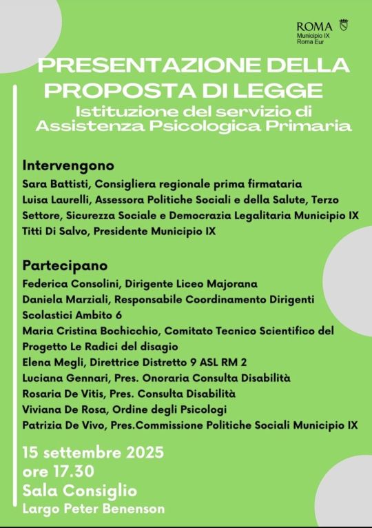 Incontro per la presentazione della proposta di legge per l’istituzione del Servizio di Assistenza Psicologica Primaria
